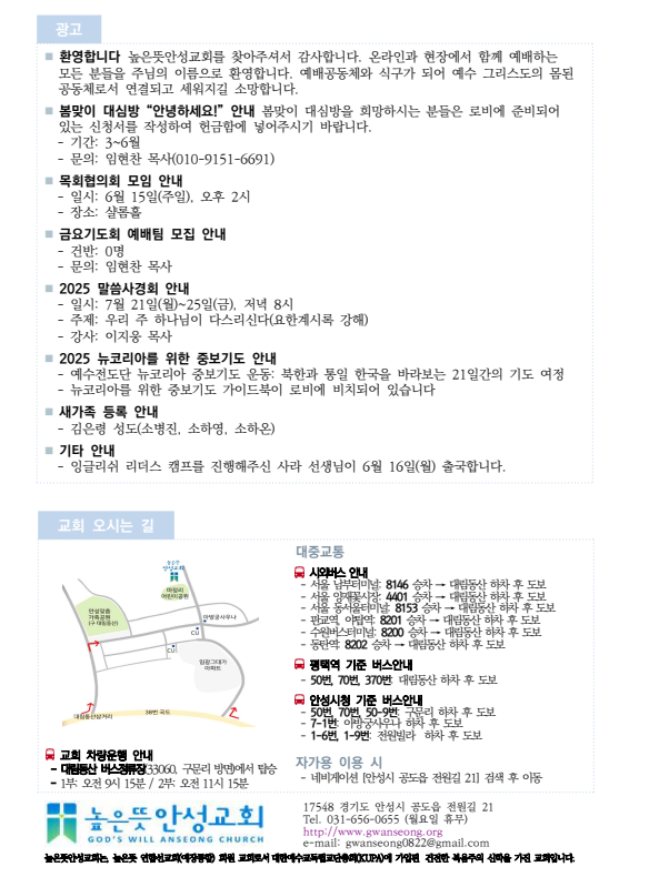 2025년 6월 15일 주보 2025.06.13 20:33 소식/교회주보 2025.06.15 주보.pdf 0.24MB 공유하기 게시글 관리 높은뜻 안성교회 '소식 > 교회주보' 카테고리의 다른 글 2025년 6월 29일 주보 (0) 2025.06.27 2025년 6월 22일 주보 (0) 2025.06.22 2025년 6월 1일 주보 (0) 2025.05.31 2025년 5월 25일 주보 (0) 2025.05.24 2025년 5월 18일 주보 (0) 2025.05.17 댓글 공유하기 다른 글 댓글 이 글 공유하기 구독하기 구독하기 카카오톡 카카오톡 라인 라인 트위터 트위터 Facebook Facebook 카카오스토리 카카오스토리 밴드 밴드 네이버 블로그 네이버 블로그 Pocket Pocket Evernote Evernote 다른 글 2025년 6월 29일 주보 2025년 6월 29일 주보 2025.06.27 2025년 6월 22일 주보 2025년 6월 22일 주보 2025.06.22 2025년 6월 1일 주보 2025년 6월 1일 주보 2025.05.31 2025년 5월 25일 주보 2025년 5월 25일 주보 2025.05.24 다른 글 더 둘러보기