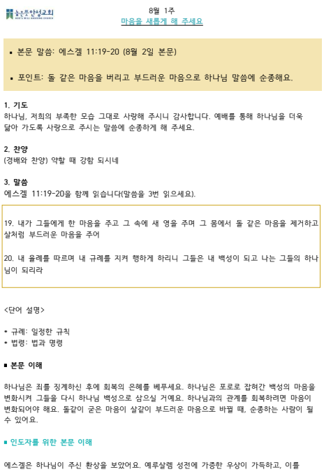 2025년 8월 첫째주 수요 가정예배 순서지 2025.07.23 20:40 소식/가정예배 순서지 2025년 8월 1주 가정예배.pdf 0.10MB 공유하기 게시글 관리 높은뜻 안성교회 '소식 > 가정예배 순서지' 카테고리의 다른 글 2025년 8월 셋째주 수요 가정예배 순서지 (0) 2025.08.08 2025년 8월 둘째주 수요 가정예배 순서지 (1) 2025.08.02 2025년 7월 넷째주 수요 가정예배 순서지 (0) 2025.07.19 2025년 7월 셋째주 수요 가정예배 순서지 (0) 2025.07.11 2025년 7월 둘째주 수요 가정예배 순서지 (0) 2025.07.05 댓글 공유하기 다른 글 댓글 이 글 공유하기 구독하기 구독하기 카카오톡 카카오톡 라인 라인 트위터 트위터 Facebook Facebook 카카오스토리 카카오스토리 밴드 밴드 네이버 블로그 네이버 블로그 Pocket Pocket Evernote Evernote 다른 글 2025년 8월 셋째주 수요 가정예배 순서지 2025년 8월 셋째주 수요 가정예배 순서지 2025.08.08 2025년 8월 둘째주 수요 가정예배 순서지 2025년 8월 둘째주 수요 가정예배 순서지 2025.08.02 2025년 7월 넷째주 수요 가정예배 순서지 2025년 7월 넷째주 수요 가정예배 순서지 2025.07.19 2025년 7월 셋째주 수요 가정예배 순서지 2025년 7월 셋째주 수요 가정예배 순서지 2025.07.11 다른 글 더 둘러보기