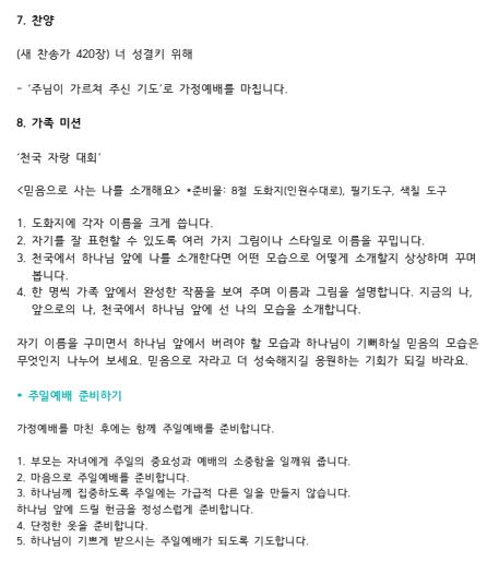 2025년 8월 다섯째주 수요 가정예배 순서지 2025.08.23 14:14 소식/가정예배 순서지 2025년 8월 5주 가정예배.pdf 0.10MB 공유하기 게시글 관리 높은뜻 안성교회 '소식 > 가정예배 순서지' 카테고리의 다른 글 2025년 9월 셋째주 수요 가정예배 순서지 (0) 2025.09.13 2025년 9월 첫째주 수요 가정예배 순서지 (0) 2025.08.30 2025년 8월 넷째주 수요 가정예배 순서지 (0) 2025.08.16 2025년 8월 셋째주 수요 가정예배 순서지 (0) 2025.08.08 2025년 8월 둘째주 수요 가정예배 순서지 (1) 2025.08.02 댓글 공유하기 다른 글 댓글 이 글 공유하기 구독하기 구독하기 카카오톡 카카오톡 라인 라인 트위터 트위터 Facebook Facebook 카카오스토리 카카오스토리 밴드 밴드 네이버 블로그 네이버 블로그 Pocket Pocket Evernote Evernote 다른 글 2025년 9월 셋째주 수요 가정예배 순서지 2025년 9월 셋째주 수요 가정예배 순서지 2025.09.13 2025년 9월 첫째주 수요 가정예배 순서지 2025년 9월 첫째주 수요 가정예배 순서지 2025.08.30 2025년 8월 넷째주 수요 가정예배 순서지 2025년 8월 넷째주 수요 가정예배 순서지 2025.08.16 2025년 8월 셋째주 수요 가정예배 순서지 2025년 8월 셋째주 수요 가정예배 순서지 2025.08.08 다른 글 더 둘러보기