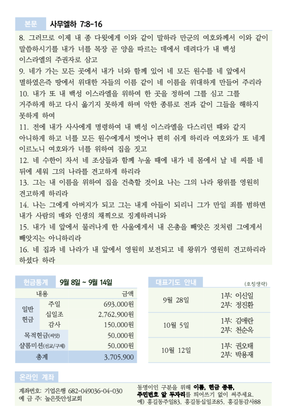 2025년 9월 21일 주보 2025.09.19 18:06 소식/교회주보 2025.09.21 주보.pdf 0.23MB 공유하기 게시글 관리 높은뜻 안성교회 '소식 > 교회주보' 카테고리의 다른 글 2025년 10월 5일 주보 (0) 2025.10.04 2025년 9월 28일 주보 (0) 2025.09.26 2025년 9월 14일 주보 (0) 2025.09.14 2025년 9월 7일 주보 (0) 2025.09.05 2025년 8월 31일 주보 (0) 2025.08.30 댓글 공유하기 다른 글 댓글 이 글 공유하기 구독하기 구독하기 카카오톡 카카오톡 라인 라인 트위터 트위터 Facebook Facebook 카카오스토리 카카오스토리 밴드 밴드 네이버 블로그 네이버 블로그 Pocket Pocket Evernote Evernote 다른 글 2025년 10월 5일 주보 2025년 10월 5일 주보 2025.10.04 2025년 9월 28일 주보 2025년 9월 28일 주보 2025.09.26 2025년 9월 14일 주보 2025년 9월 14일 주보 2025.09.14 2025년 9월 7일 주보 2025년 9월 7일 주보 2025.09.05 다른 글 더 둘러보기