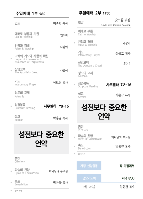 2025년 9월 21일 주보 2025.09.19 18:06 소식/교회주보 2025.09.21 주보.pdf 0.23MB 공유하기 게시글 관리 높은뜻 안성교회 '소식 > 교회주보' 카테고리의 다른 글 2025년 10월 5일 주보 (0) 2025.10.04 2025년 9월 28일 주보 (0) 2025.09.26 2025년 9월 14일 주보 (0) 2025.09.14 2025년 9월 7일 주보 (0) 2025.09.05 2025년 8월 31일 주보 (0) 2025.08.30 댓글 공유하기 다른 글 댓글 이 글 공유하기 구독하기 구독하기 카카오톡 카카오톡 라인 라인 트위터 트위터 Facebook Facebook 카카오스토리 카카오스토리 밴드 밴드 네이버 블로그 네이버 블로그 Pocket Pocket Evernote Evernote 다른 글 2025년 10월 5일 주보 2025년 10월 5일 주보 2025.10.04 2025년 9월 28일 주보 2025년 9월 28일 주보 2025.09.26 2025년 9월 14일 주보 2025년 9월 14일 주보 2025.09.14 2025년 9월 7일 주보 2025년 9월 7일 주보 2025.09.05 다른 글 더 둘러보기