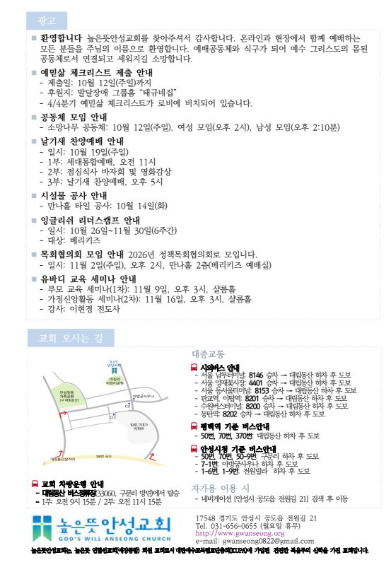 2025년 10월 12일 주보 2025.10.10 17:56 소식/교회주보 2025.10.12 주보.pdf 0.26MB 공유하기 게시글 관리 높은뜻 안성교회 '소식 > 교회주보' 카테고리의 다른 글 2025년 10월 5일 주보 (0) 2025.10.04 2025년 9월 28일 주보 (0) 2025.09.26 2025년 9월 21일 주보 (0) 2025.09.19 2025년 9월 14일 주보 (0) 2025.09.14 2025년 9월 7일 주보 (0) 2025.09.05 댓글 공유하기 다른 글 댓글 이 글 공유하기 구독하기 구독하기 카카오톡 카카오톡 라인 라인 트위터 트위터 Facebook Facebook 카카오스토리 카카오스토리 밴드 밴드 네이버 블로그 네이버 블로그 Pocket Pocket Evernote Evernote 다른 글 2025년 10월 5일 주보 2025년 10월 5일 주보 2025.10.04 2025년 9월 28일 주보 2025년 9월 28일 주보 2025.09.26 2025년 9월 21일 주보 2025년 9월 21일 주보 2025.09.19 2025년 9월 14일 주보 2025년 9월 14일 주보 2025.09.14 다른 글 더 둘러보기