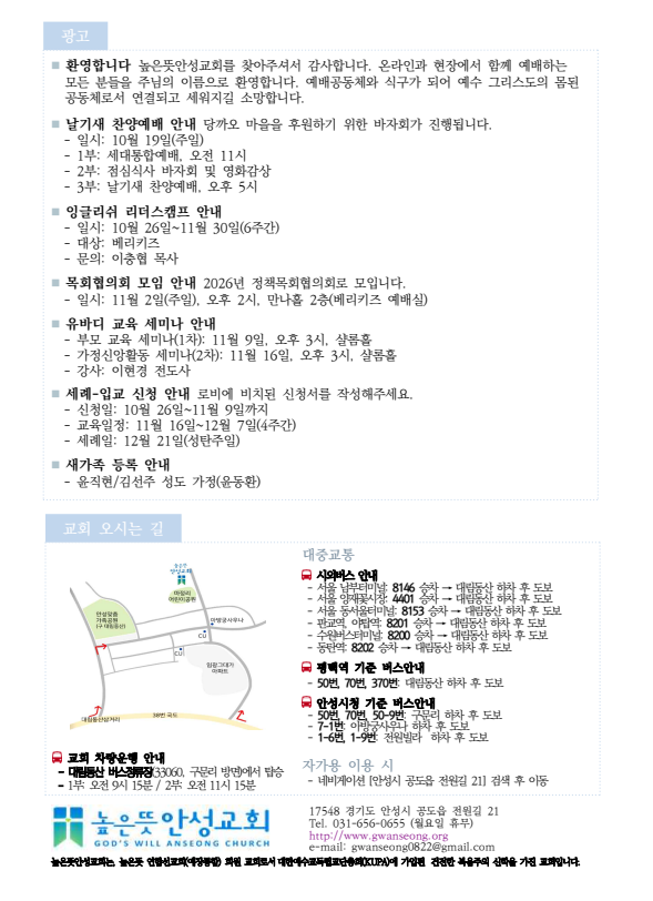 2025년 10월 19일 주보 2025.10.18 14:17 소식/교회주보 2025.10.19 주보 (1).pdf 0.26MB 공유하기 게시글 관리 높은뜻 안성교회 '소식 > 교회주보' 카테고리의 다른 글 2025년 11월 2일 주보 (0) 2025.11.01 2025년 10월 26일 주보 (0) 2025.10.24 2025년 10월 12일 주보 (0) 2025.10.10 2025년 10월 5일 주보 (0) 2025.10.04 2025년 9월 28일 주보 (0) 2025.09.26 댓글 공유하기 다른 글 댓글 이 글 공유하기 구독하기 구독하기 카카오톡 카카오톡 라인 라인 트위터 트위터 Facebook Facebook 카카오스토리 카카오스토리 밴드 밴드 네이버 블로그 네이버 블로그 Pocket Pocket Evernote Evernote 다른 글 2025년 11월 2일 주보 2025년 11월 2일 주보 2025.11.01 2025년 10월 26일 주보 2025년 10월 26일 주보 2025.10.24 2025년 10월 12일 주보 2025년 10월 12일 주보 2025.10.10 2025년 10월 5일 주보 2025년 10월 5일 주보 2025.10.04 다른 글 더 둘러보기