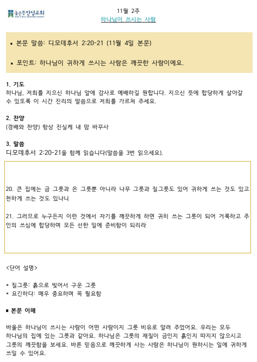 2025년 11월 둘째주 수요 가정예배 순서지 2025.11.01 17:13 소식/가정예배 순서지 2025년 11월 2주 가정예배.pdf 0.09MB 공유하기 게시글 관리 높은뜻 안성교회 '소식 > 가정예배 순서지' 카테고리의 다른 글 2025년 11월 넷째주 수요 가정예배 순서지 (0) 2025.11.14 2025년 11월 셋째주 수요 가정예배 순서지 (0) 2025.11.08 2025년 11월 첫째주 수요 가정예배 순서지 (0) 2025.10.24 2025년 10월 넷째주 수요 가정예배 순서지 (0) 2025.10.17 2025년 10월 셋째주 수요 가정예배 순서지 (0) 2025.10.11 댓글 공유하기 다른 글 댓글 이 글 공유하기 구독하기 구독하기 카카오톡 카카오톡 라인 라인 트위터 트위터 Facebook Facebook 카카오스토리 카카오스토리 밴드 밴드 네이버 블로그 네이버 블로그 Pocket Pocket Evernote Evernote 다른 글 2025년 11월 넷째주 수요 가정예배 순서지 2025년 11월 넷째주 수요 가정예배 순서지 2025.11.14 2025년 11월 셋째주 수요 가정예배 순서지 2025년 11월 셋째주 수요 가정예배 순서지 2025.11.08 2025년 11월 첫째주 수요 가정예배 순서지 2025년 11월 첫째주 수요 가정예배 순서지 2025.10.24 2025년 10월 넷째주 수요 가정예배 순서지 2025년 10월 넷째주 수요 가정예배 순서지 2025.10.17 다른 글 더 둘러보기