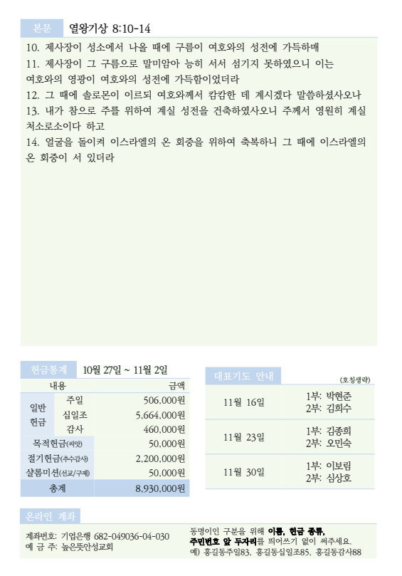 2025년 11월 9일 주보 2025.11.07 17:33 소식/교회주보 2025.11.09 주보.pdf 0.24MB 공유하기 게시글 관리 높은뜻 안성교회 '소식 > 교회주보' 카테고리의 다른 글 2025년 11월 23일 주보 (0) 2025.11.21 2025년 11월 16일 주보 (0) 2025.11.15 2025년 11월 2일 주보 (0) 2025.11.01 2025년 10월 26일 주보 (0) 2025.10.24 2025년 10월 19일 주보 (0) 2025.10.18 댓글 공유하기 다른 글 댓글 이 글 공유하기 구독하기 구독하기 카카오톡 카카오톡 라인 라인 트위터 트위터 Facebook Facebook 카카오스토리 카카오스토리 밴드 밴드 네이버 블로그 네이버 블로그 Pocket Pocket Evernote Evernote 다른 글 2025년 11월 23일 주보 2025년 11월 23일 주보 2025.11.21 2025년 11월 16일 주보 2025년 11월 16일 주보 2025.11.15 2025년 11월 2일 주보 2025년 11월 2일 주보 2025.11.01 2025년 10월 26일 주보 2025년 10월 26일 주보 2025.10.24 다른 글 더 둘러보기