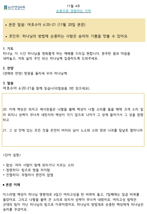 2025년 11월 넷째주 수요 가정예배 순서지 2025.11.14 00:09 소식/가정예배 순서지 2025년 11월 4주 가정예배.pdf 0.10MB 공유하기 게시글 관리 높은뜻 안성교회 '소식 > 가정예배 순서지' 카테고리의 다른 글 2025년 12월 첫째주 수요 가정예배 순서지 (0) 2025.11.29 2025년 11월 다섯째주 수요 가정예배 순서지 (0) 2025.11.22 2025년 11월 셋째주 수요 가정예배 순서지 (0) 2025.11.08 2025년 11월 둘째주 수요 가정예배 순서지 (0) 2025.11.01 2025년 11월 첫째주 수요 가정예배 순서지 (0) 2025.10.24 댓글 공유하기 다른 글 댓글 이 글 공유하기 구독하기 구독하기 카카오톡 카카오톡 라인 라인 트위터 트위터 Facebook Facebook 카카오스토리 카카오스토리 밴드 밴드 네이버 블로그 네이버 블로그 Pocket Pocket Evernote Evernote 다른 글 2025년 12월 첫째주 수요 가정예배 순서지 2025년 12월 첫째주 수요 가정예배 순서지 2025.11.29 2025년 11월 다섯째주 수요 가정예배 순서지 2025년 11월 다섯째주 수요 가정예배 순서지 2025.11.22 2025년 11월 셋째주 수요 가정예배 순서지 2025년 11월 셋째주 수요 가정예배 순서지 2025.11.08 2025년 11월 둘째주 수요 가정예배 순서지 2025년 11월 둘째주 수요 가정예배 순서지 2025.11.01 다른 글 더 둘러보기