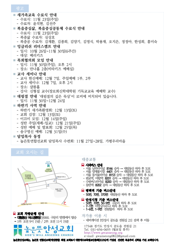 2025년 11월 23일 주보 2025.11.21 17:31 소식/교회주보 2025.11.23 주보.pdf 0.25MB 공유하기 게시글 관리 높은뜻 안성교회 '소식 > 교회주보' 카테고리의 다른 글 2025년 12월 7일 주보 (0) 2025.12.06 2025년 11월 30일 주보 (0) 2025.11.28 2025년 11월 16일 주보 (0) 2025.11.15 2025년 11월 9일 주보 (0) 2025.11.07 2025년 11월 2일 주보 (0) 2025.11.01 댓글 공유하기 다른 글 댓글 이 글 공유하기 구독하기 구독하기 카카오톡 카카오톡 라인 라인 트위터 트위터 Facebook Facebook 카카오스토리 카카오스토리 밴드 밴드 네이버 블로그 네이버 블로그 Pocket Pocket Evernote Evernote 다른 글 2025년 12월 7일 주보 2025년 12월 7일 주보 2025.12.06 2025년 11월 30일 주보 2025년 11월 30일 주보 2025.11.28 2025년 11월 16일 주보 2025년 11월 16일 주보 2025.11.15 2025년 11월 9일 주보 2025년 11월 9일 주보 2025.11.07 다른 글 더 둘러보기