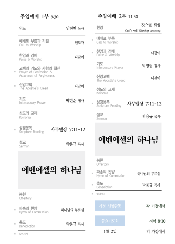 2025년 12월 28일 주보 2025.12.27 17:19 소식/교회주보 2025.12.28 주보.pdf 0.25MB 공유하기 게시글 관리 높은뜻 안성교회 '소식 > 교회주보' 카테고리의 다른 글 2026년 1월 11일 주보 (0) 2026.01.10 2026년 1월 4일 주보 (0) 2026.01.03 2025년 12월 21일 주보 (0) 2025.12.20 2025년 12월 14일 주보 (0) 2025.12.12 2025년 12월 7일 주보 (0) 2025.12.06 댓글 공유하기 다른 글 댓글 이 글 공유하기 구독하기 구독하기 카카오톡 카카오톡 라인 라인 트위터 트위터 Facebook Facebook 카카오스토리 카카오스토리 밴드 밴드 네이버 블로그 네이버 블로그 Pocket Pocket Evernote Evernote 다른 글 2026년 1월 11일 주보 2026년 1월 11일 주보 2026.01.10 2026년 1월 4일 주보 2026년 1월 4일 주보 2026.01.03 2025년 12월 21일 주보 2025년 12월 21일 주보 2025.12.20 2025년 12월 14일 주보 2025년 12월 14일 주보 2025.12.12 다른 글 더 둘러보기