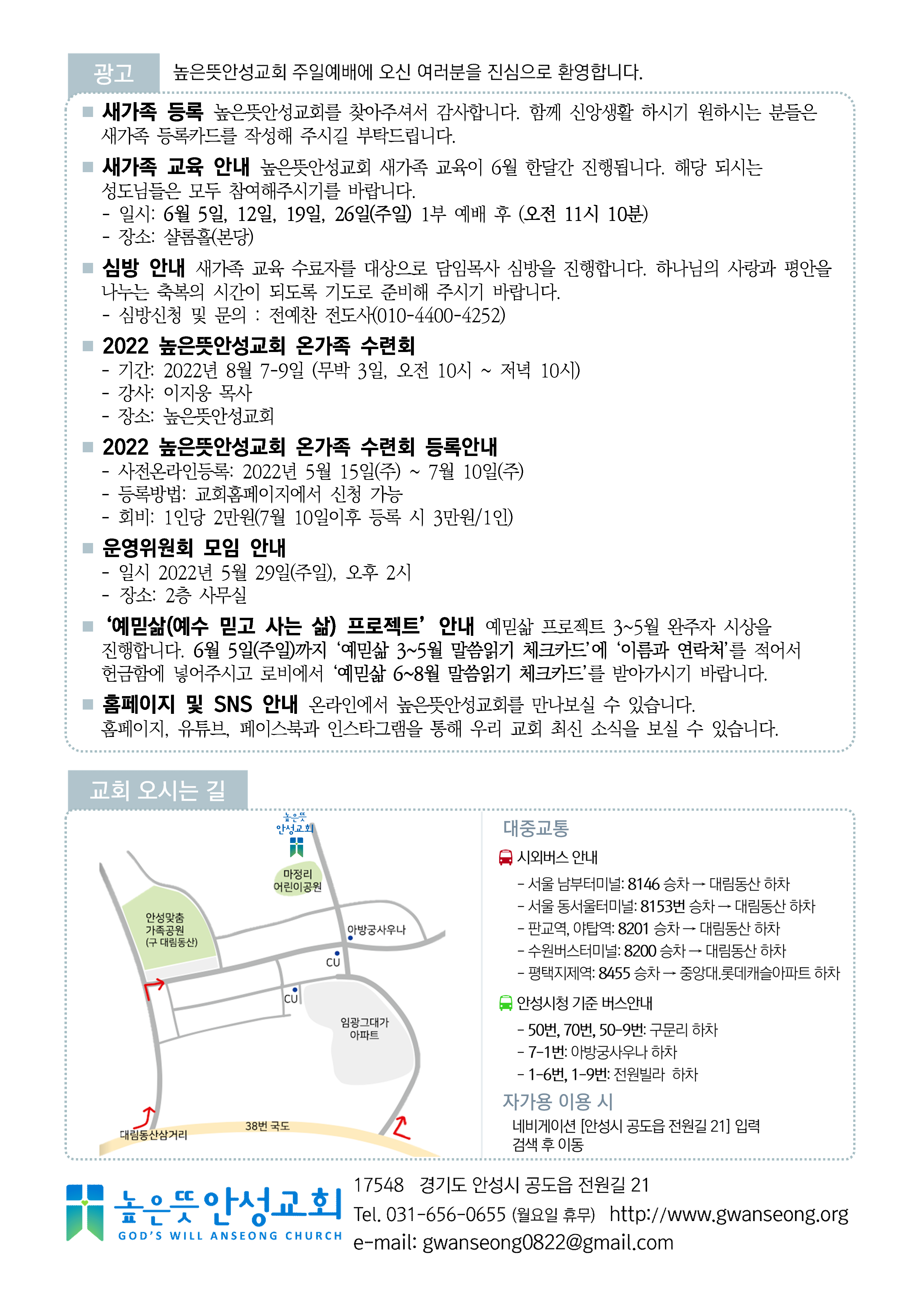 2022년 5월 29일 주보 2022.05.27 22:54 소식/교회주보 공유하기 게시글 관리 높은뜻 안성교회 저작자표시 (새창열림) '소식 > 교회주보' 카테고리의 다른 글 2022년 6월 12일 주보 (0) 2022.06.11 2022년 6월 5일 주보 (0) 2022.06.04 2022년 5월 22일 주보 (0) 2022.05.21 2022년 5월 15일 주보 (0) 2022.05.13 2022년 5월 8일 주보 (0) 2022.05.07 댓글 공유하기 다른 글 댓글 이 글 공유하기 구독하기 구독하기 카카오톡 카카오톡 라인 라인 트위터 트위터 Facebook Facebook 카카오스토리 카카오스토리 밴드 밴드 네이버 블로그 네이버 블로그 Pocket Pocket Evernote Evernote 다른 글 2022년 6월 12일 주보 2022년 6월 12일 주보 2022.06.11 2022년 6월 5일 주보 2022년 6월 5일 주보 2022.06.04 2022년 5월 22일 주보 2022년 5월 22일 주보 2022.05.21 2022년 5월 15일 주보 2022년 5월 15일 주보 2022.05.13 다른 글 더 둘러보기