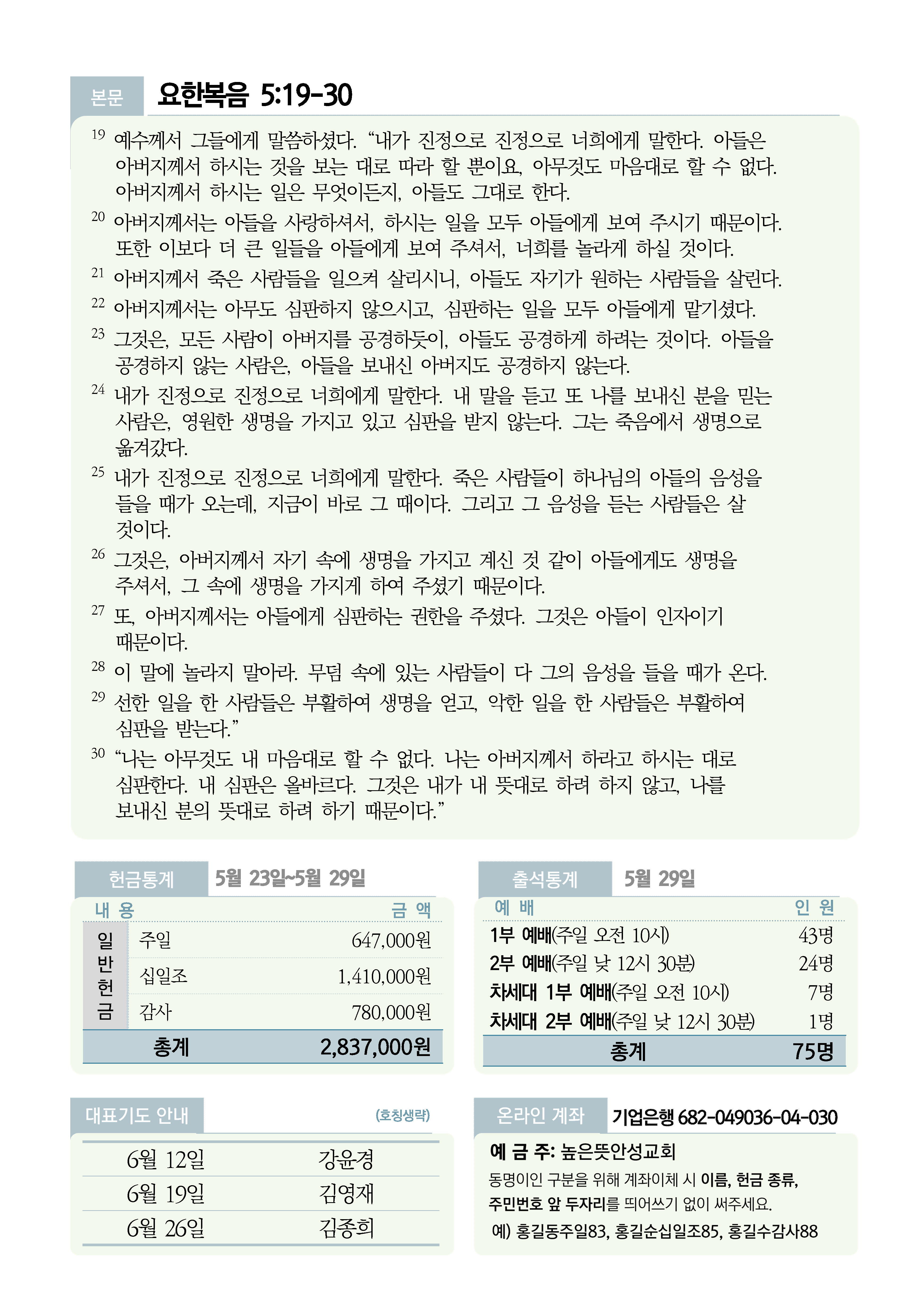 2022년 6월 5일 주보 2022.06.04 19:41 소식/교회주보 공유하기 게시글 관리 높은뜻 안성교회 저작자표시 (새창열림) '소식 > 교회주보' 카테고리의 다른 글 2022년 6월 19일 주보 (0) 2022.06.18 2022년 6월 12일 주보 (0) 2022.06.11 2022년 5월 29일 주보 (0) 2022.05.27 2022년 5월 22일 주보 (0) 2022.05.21 2022년 5월 15일 주보 (0) 2022.05.13 댓글 공유하기 다른 글 댓글 이 글 공유하기 구독하기 구독하기 카카오톡 카카오톡 라인 라인 트위터 트위터 Facebook Facebook 카카오스토리 카카오스토리 밴드 밴드 네이버 블로그 네이버 블로그 Pocket Pocket Evernote Evernote 다른 글 2022년 6월 19일 주보 2022년 6월 19일 주보 2022.06.18 2022년 6월 12일 주보 2022년 6월 12일 주보 2022.06.11 2022년 5월 29일 주보 2022년 5월 29일 주보 2022.05.27 2022년 5월 22일 주보 2022년 5월 22일 주보 2022.05.21 다른 글 더 둘러보기