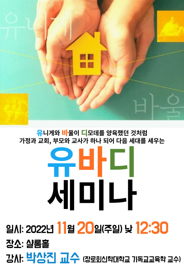 유바디 세미나 2022.11.18 18:39 소식/교회소식 유바디 교육 세미나가 11월 20일(주일) 2부 예배시간에 진행됩니다. 많은 관심과 참여를 부탁드립니다. 일시: 11월 20일(주일) 낮 12시 30분 강사: 박상진 교수(장로회신학대학 기독교교육학 교수) 공유하기 게시글 관리 높은뜻 안성교회 저작자표시 (새창열림) '소식 > 교회소식' 카테고리의 다른 글 2022 송구영신예배 및 2023 신년특별새벽기도회 안내 (0) 2022.12.02 2022년 성탄예배 및 행사 안내 (0) 2022.12.02 높은뜻안성교회 창립 1주년 기념 예배 & 바자회 (0) 2022.09.29 2022 추석가정예배지 (0) 2022.09.08 2022 온가족 수련회 안내 (0) 2022.05.14 댓글 공유하기 다른 글 댓글 이 글 공유하기 구독하기 구독하기 카카오톡 카카오톡 라인 라인 트위터 트위터 Facebook Facebook 카카오스토리 카카오스토리 밴드 밴드 네이버 블로그 네이버 블로그 Pocket Pocket Evernote Evernote 다른 글 2022 송구영신예배 및 2023 신년특별새벽기도회 안내 2022 송구영신예배 및 2023 신년특별새벽기도회 안내 2022.12.02 2022년 성탄예배 및 행사 안내 2022년 성탄예배 및 행사 안내 2022.12.02 높은뜻안성교회 창립 1주년 기념 예배 & 바자회 높은뜻안성교회 창립 1주년 기념 예배 & 바자회 2022.09.29 2022 추석가정예배지 2022 추석가정예배지 2022.09.08 다른 글 더 둘러보기