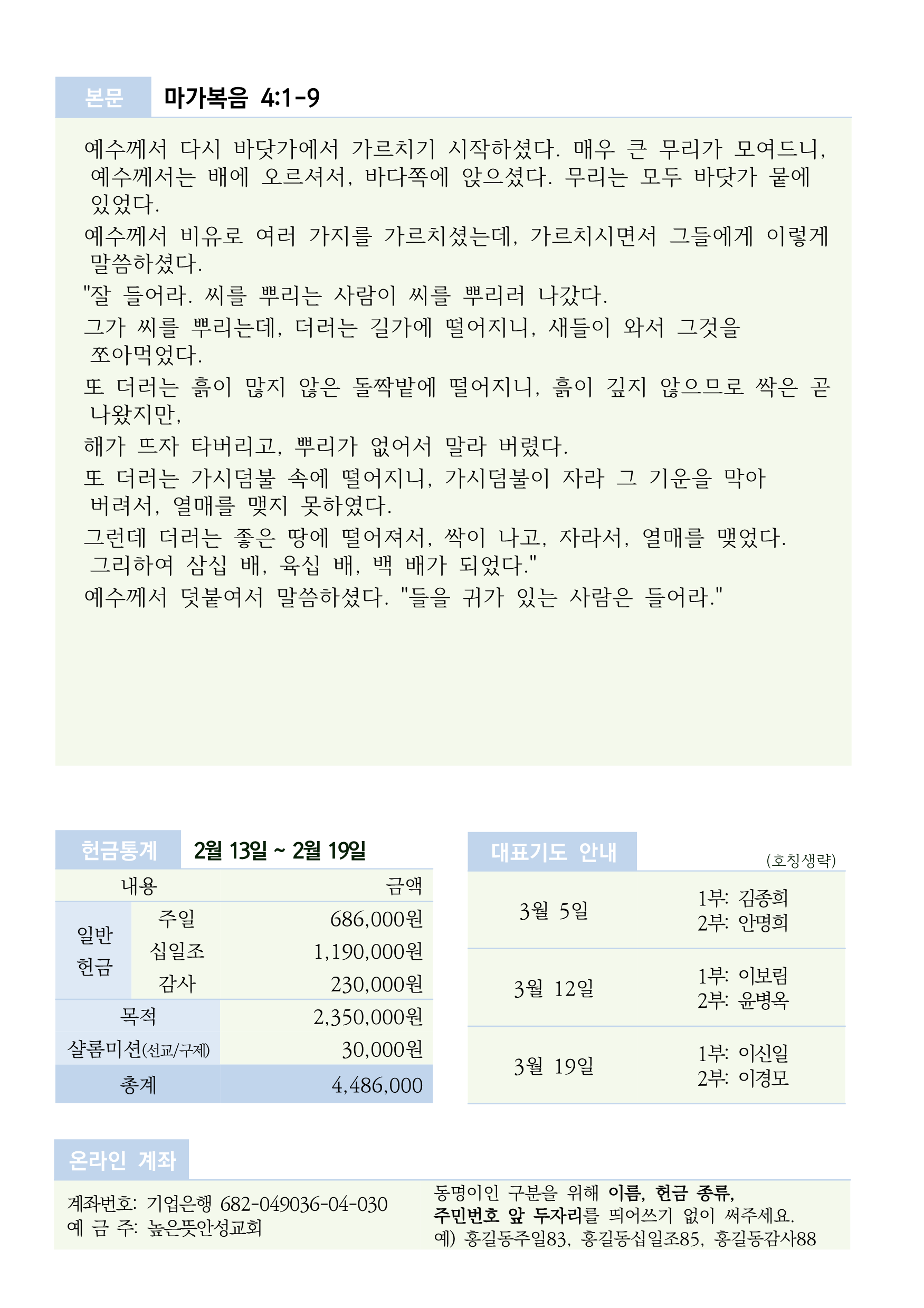 2023년 2월 26일 주보 2023.02.25 14:10 소식/교회주보 공유하기 게시글 관리 높은뜻 안성교회 저작자표시 (새창열림) '소식 > 교회주보' 카테고리의 다른 글 2023년 3월 12일 주보 (0) 2023.03.11 2023년 3월 5일 주보 (0) 2023.03.04 2023년 2월 19일 주보 (0) 2023.02.18 2023년 2월 12일 주보 (0) 2023.02.11 2023년 2월 5일 주보 (0) 2023.02.04 댓글 공유하기 다른 글 댓글 이 글 공유하기 구독하기 구독하기 카카오톡 카카오톡 라인 라인 트위터 트위터 Facebook Facebook 카카오스토리 카카오스토리 밴드 밴드 네이버 블로그 네이버 블로그 Pocket Pocket Evernote Evernote 다른 글 2023년 3월 12일 주보 2023년 3월 12일 주보 2023.03.11 2023년 3월 5일 주보 2023년 3월 5일 주보 2023.03.04 2023년 2월 19일 주보 2023년 2월 19일 주보 2023.02.18 2023년 2월 12일 주보 2023년 2월 12일 주보 2023.02.11 다른 글 더 둘러보기