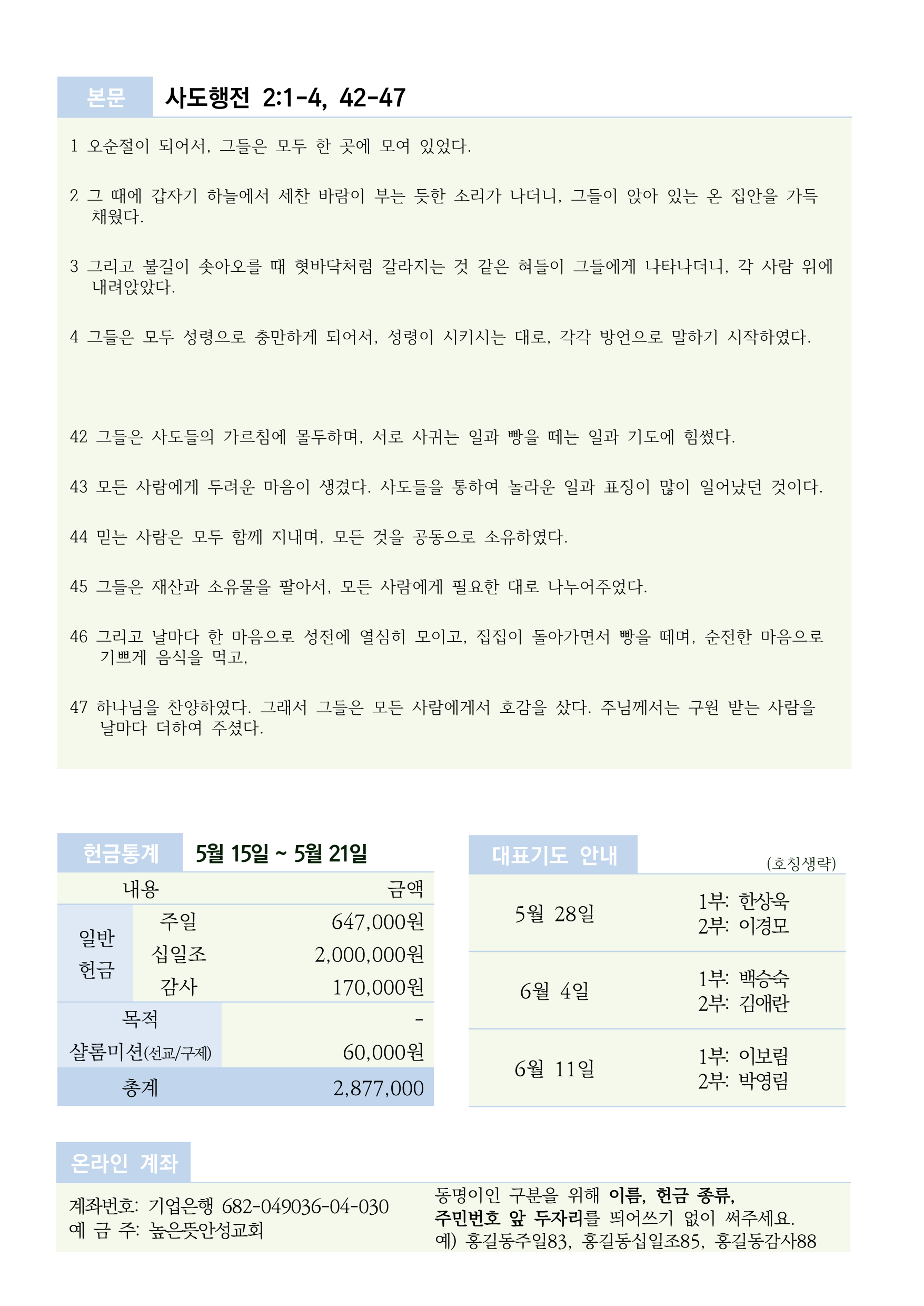 2023년 5월 28일 주보 2023.05.27 16:23 소식/교회주보 공유하기 게시글 관리 높은뜻 안성교회 저작자표시 (새창열림) '소식 > 교회주보' 카테고리의 다른 글 2023년 6월 11일 주보 (0) 2023.06.10 2023년 6월 4일 주일 주보 (0) 2023.06.03 2023년 5월 21일 주보 (0) 2023.05.20 2023년 5월 14일 주보 (0) 2023.05.13 2023년 5월 7일 주보 (0) 2023.05.06 댓글 공유하기 다른 글 댓글 이 글 공유하기 구독하기 구독하기 카카오톡 카카오톡 라인 라인 트위터 트위터 Facebook Facebook 카카오스토리 카카오스토리 밴드 밴드 네이버 블로그 네이버 블로그 Pocket Pocket Evernote Evernote 다른 글 2023년 6월 11일 주보 2023년 6월 11일 주보 2023.06.10 2023년 6월 4일 주일 주보 2023년 6월 4일 주일 주보 2023.06.03 2023년 5월 21일 주보 2023년 5월 21일 주보 2023.05.20 2023년 5월 14일 주보 2023년 5월 14일 주보 2023.05.13 다른 글 더 둘러보기