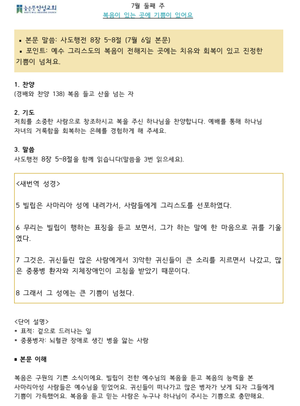 google-site-verification=kFWHt7CoNiPM2Q-Pd7XAWGxS_qFe3gqnSl4-osr1nEI 2023년 7월 둘째주 수요 가정예배 순서지