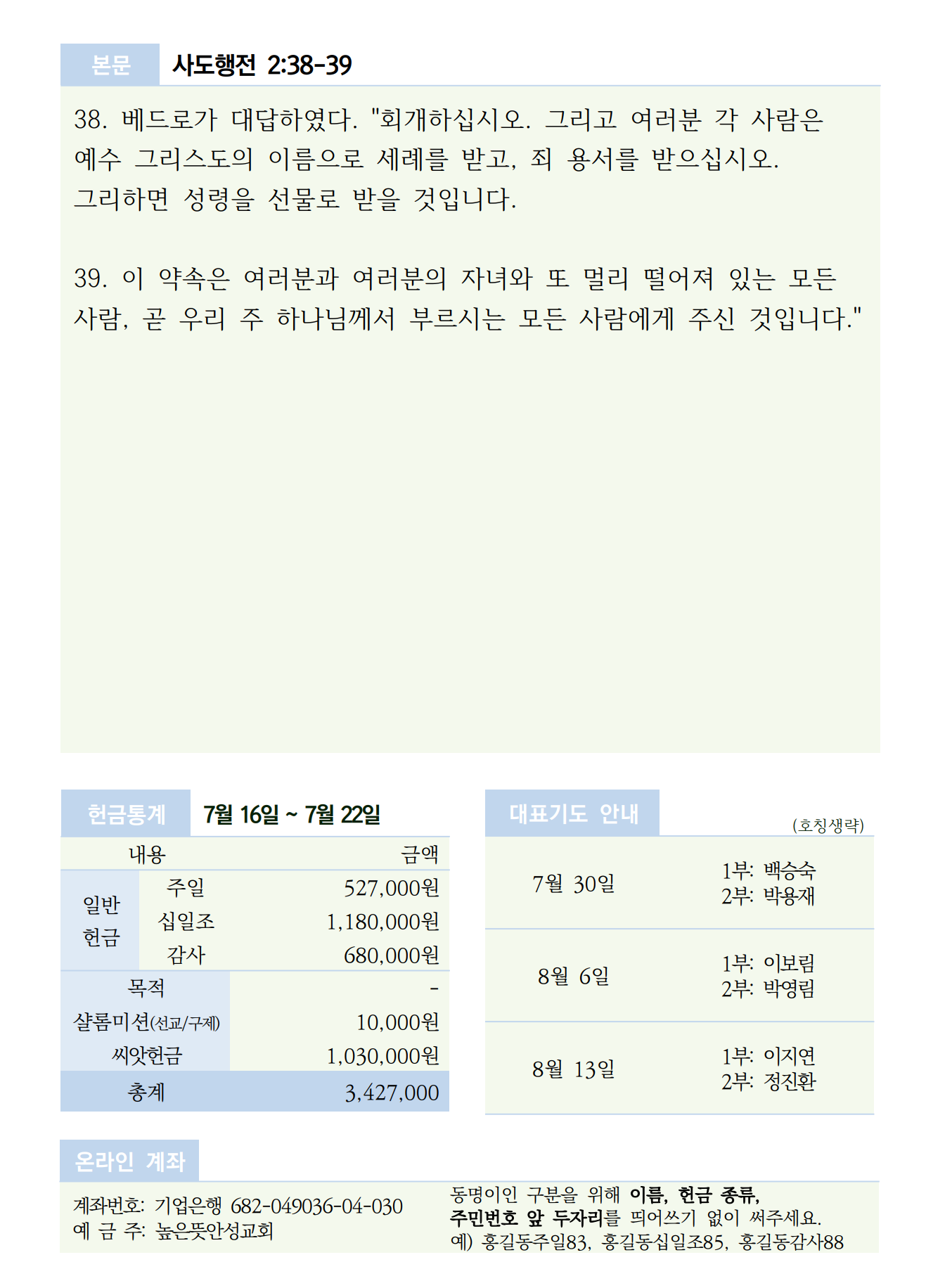 2023년 7월 30일 주보 2023.07.29 15:07 소식/교회주보 2023.07.30 주보.pdf 0.23MB 공유하기 게시글 관리 높은뜻 안성교회 저작자표시 (새창열림) '소식 > 교회주보' 카테고리의 다른 글 2023년 8월 13일 주보 (0) 2023.08.12 2023년 8월 6일 주보 (0) 2023.08.05 2023년 7월 23일 주보 (0) 2023.07.22 2023년 7월 16일 주보 (0) 2023.07.15 2023년 7월 9일 주보 (0) 2023.07.08 댓글 공유하기 다른 글 댓글 이 글 공유하기 구독하기 구독하기 카카오톡 카카오톡 라인 라인 트위터 트위터 Facebook Facebook 카카오스토리 카카오스토리 밴드 밴드 네이버 블로그 네이버 블로그 Pocket Pocket Evernote Evernote 다른 글 2023년 8월 13일 주보 2023년 8월 13일 주보 2023.08.12 2023년 8월 6일 주보 2023년 8월 6일 주보 2023.08.05 2023년 7월 23일 주보 2023년 7월 23일 주보 2023.07.22 2023년 7월 16일 주보 2023년 7월 16일 주보 2023.07.15 다른 글 더 둘러보기