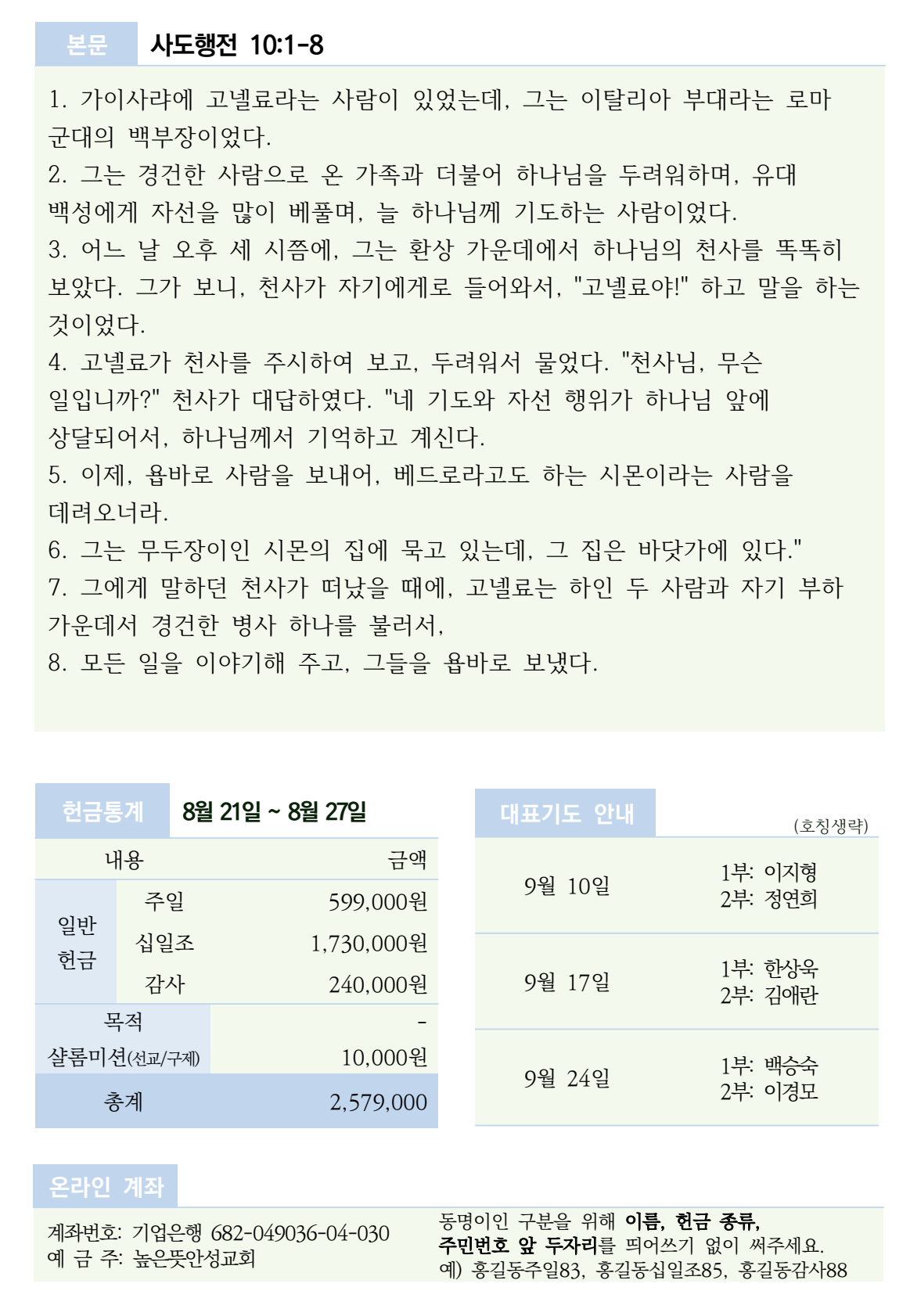 2023년 9월 3일 주보 2023.09.01 16:04 소식/교회주보 2023.09.03 주보.pdf 0.24MB 공유하기 게시글 관리 높은뜻 안성교회 저작자표시 (새창열림) '소식 > 교회주보' 카테고리의 다른 글 2023년 9월 17일 주보 (0) 2023.09.15 2023년 9월 10일 주보 (0) 2023.09.08 2023년 8월 27일 주보 (0) 2023.08.26 2023년 8월 20일 주보 (0) 2023.08.19 2023년 8월 13일 주보 (0) 2023.08.12 댓글 공유하기 다른 글 댓글 이 글 공유하기 구독하기 구독하기 카카오톡 카카오톡 라인 라인 트위터 트위터 Facebook Facebook 카카오스토리 카카오스토리 밴드 밴드 네이버 블로그 네이버 블로그 Pocket Pocket Evernote Evernote 다른 글 2023년 9월 17일 주보 2023년 9월 17일 주보 2023.09.15 2023년 9월 10일 주보 2023년 9월 10일 주보 2023.09.08 2023년 8월 27일 주보 2023년 8월 27일 주보 2023.08.26 2023년 8월 20일 주보 2023년 8월 20일 주보 2023.08.19 다른 글 더 둘러보기