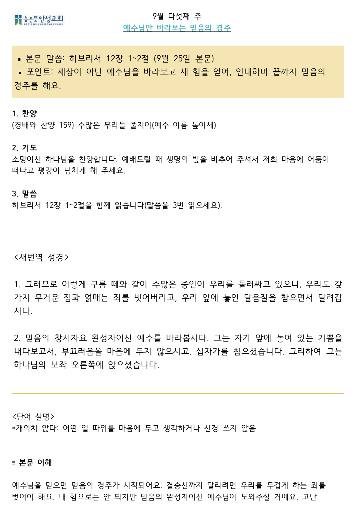 2023년 9월 다섯째주 수요 가정예배 순서지 2023.09.23 12:36 소식/가정예배 순서지 2023년 9월 5주 가정예배.pdf 0.09MB 공유하기 게시글 관리 높은뜻 안성교회 저작자표시 (새창열림) '소식 > 가정예배 순서지' 카테고리의 다른 글 2023년 10월 둘째주 수요 가정예배 순서지 (0) 2023.10.07 2023년 10월 첫째주 수요 가정예배 순서지 (0) 2023.10.01 2023년 9월 넷째주 수요 가정예배 순서지 (0) 2023.09.16 2023년 9월 셋째주 수요 가정예배 순서지 (0) 2023.09.09 2023년 9월 둘째주 수요 가정예배 순서지 (0) 2023.09.02 댓글 공유하기 다른 글 댓글 이 글 공유하기 구독하기 구독하기 카카오톡 카카오톡 라인 라인 트위터 트위터 Facebook Facebook 카카오스토리 카카오스토리 밴드 밴드 네이버 블로그 네이버 블로그 Pocket Pocket Evernote Evernote 다른 글 2023년 10월 둘째주 수요 가정예배 순서지 2023년 10월 둘째주 수요 가정예배 순서지 2023.10.07 2023년 10월 첫째주 수요 가정예배 순서지 2023년 10월 첫째주 수요 가정예배 순서지 2023.10.01 2023년 9월 넷째주 수요 가정예배 순서지 2023년 9월 넷째주 수요 가정예배 순서지 2023.09.16 2023년 9월 셋째주 수요 가정예배 순서지 2023년 9월 셋째주 수요 가정예배 순서지 2023.09.09 다른 글 더 둘러보기