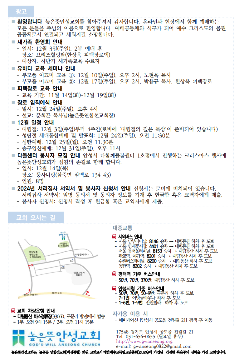 2023년 12월 3일 주보 2023.12.02 14:19 소식/교회주보 2023.12.03 주보.pdf 0.24MB 공유하기 게시글 관리 높은뜻 안성교회 '소식 > 교회주보' 카테고리의 다른 글 2023년 12월 17일 주보 (0) 2023.12.16 2023년 12월 10일 주보 (0) 2023.12.09 2023년 11월 26일 주보 (0) 2023.11.25 2023년 11월 19일 주보 (0) 2023.11.18 2023년 11월 12일 주보 (0) 2023.11.11 댓글 공유하기 다른 글 댓글 이 글 공유하기 구독하기 구독하기 카카오톡 카카오톡 라인 라인 트위터 트위터 Facebook Facebook 카카오스토리 카카오스토리 밴드 밴드 네이버 블로그 네이버 블로그 Pocket Pocket Evernote Evernote 다른 글 2023년 12월 17일 주보 2023년 12월 17일 주보 2023.12.16 2023년 12월 10일 주보 2023년 12월 10일 주보 2023.12.09 2023년 11월 26일 주보 2023년 11월 26일 주보 2023.11.25 2023년 11월 19일 주보 2023년 11월 19일 주보 2023.11.18 다른 글 더 둘러보기