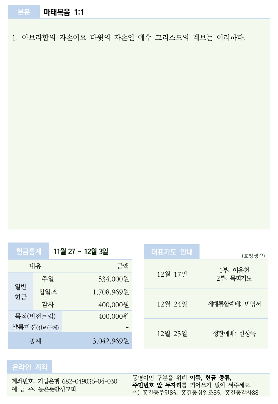 2023년 12월 10일 주보 2023.12.09 15:45 소식/교회주보 2023.12.10 주보.pdf 0.23MB 공유하기 게시글 관리 높은뜻 안성교회 '소식 > 교회주보' 카테고리의 다른 글 2023년 12월 24일 주보 (0) 2023.12.23 2023년 12월 17일 주보 (0) 2023.12.16 2023년 12월 3일 주보 (0) 2023.12.02 2023년 11월 26일 주보 (0) 2023.11.25 2023년 11월 19일 주보 (0) 2023.11.18 댓글 공유하기 다른 글 댓글 이 글 공유하기 구독하기 구독하기 카카오톡 카카오톡 라인 라인 트위터 트위터 Facebook Facebook 카카오스토리 카카오스토리 밴드 밴드 네이버 블로그 네이버 블로그 Pocket Pocket Evernote Evernote 다른 글 2023년 12월 24일 주보 2023년 12월 24일 주보 2023.12.23 2023년 12월 17일 주보 2023년 12월 17일 주보 2023.12.16 2023년 12월 3일 주보 2023년 12월 3일 주보 2023.12.02 2023년 11월 26일 주보 2023년 11월 26일 주보 2023.11.25 다른 글 더 둘러보기
