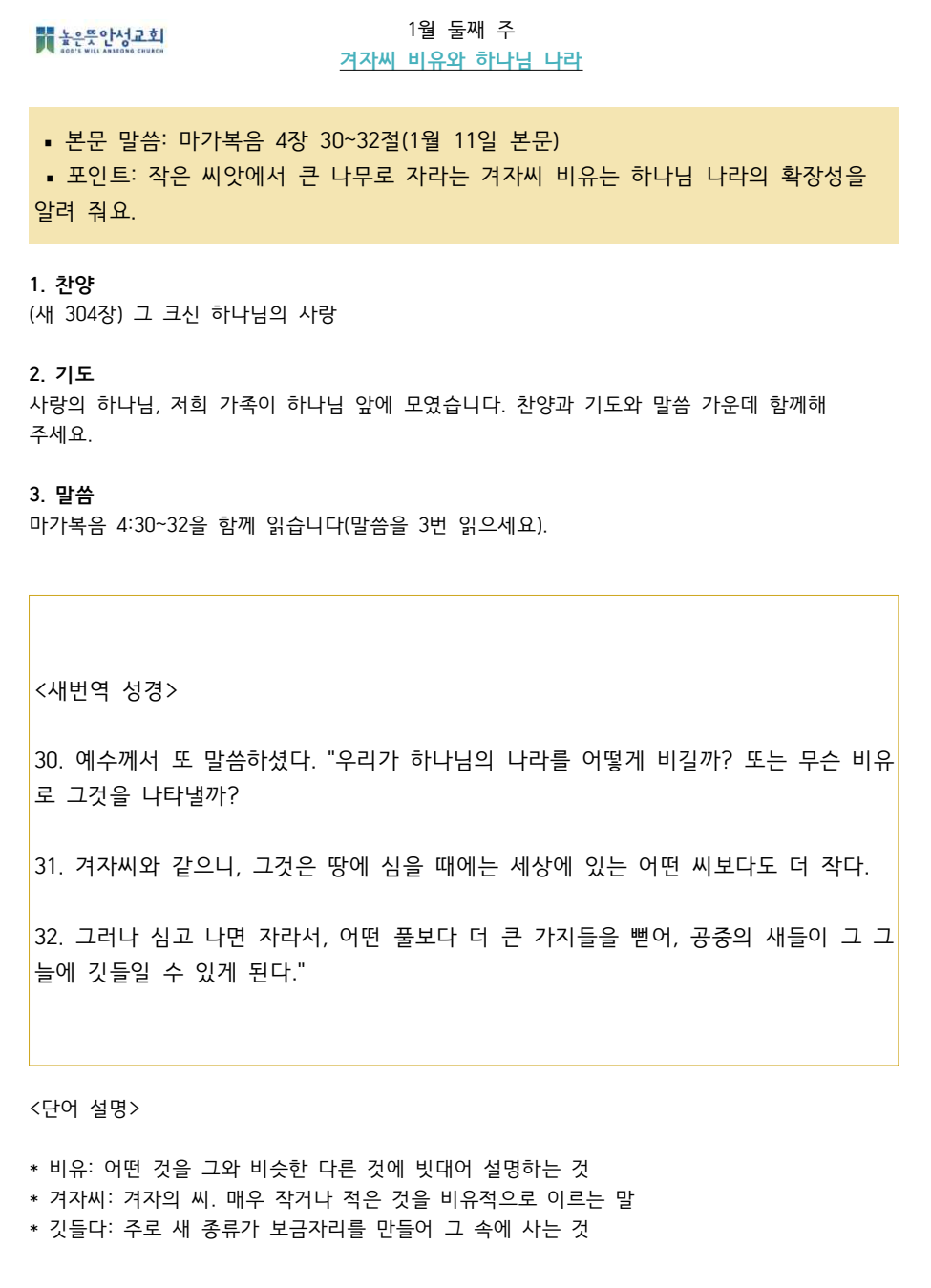 2024년 1월 둘째주 수요 가정예배 순서지 2024.01.06 16:47 소식/가정예배 순서지 2024년 1월 2주 가정예배.pdf 0.09MB 공유하기 게시글 관리 높은뜻 안성교회 '소식 > 가정예배 순서지' 카테고리의 다른 글 설명절 가정예배 순서지 입니다 (0) 2024.02.09 2024년 1월 셋째주 수요 가정예배 순서지 (0) 2024.01.20 2024년 1월 첫째주 수요 가정예배 순서지 (0) 2023.12.30 2023년 12월 다섯째주 수요 가정예배 순서지 (0) 2023.12.23 2023년 12월 넷째주 수요 가정예배 순서지 (0) 2023.12.16 댓글 공유하기 다른 글 댓글 이 글 공유하기 구독하기 구독하기 카카오톡 카카오톡 라인 라인 트위터 트위터 Facebook Facebook 카카오스토리 카카오스토리 밴드 밴드 네이버 블로그 네이버 블로그 Pocket Pocket Evernote Evernote 다른 글 설명절 가정예배 순서지 입니다 설명절 가정예배 순서지 입니다 2024.02.09 2024년 1월 셋째주 수요 가정예배 순서지 2024년 1월 셋째주 수요 가정예배 순서지 2024.01.20 2024년 1월 첫째주 수요 가정예배 순서지 2024년 1월 첫째주 수요 가정예배 순서지 2023.12.30 2023년 12월 다섯째주 수요 가정예배 순서지 2023년 12월 다섯째주 수요 가정예배 순서지 2023.12.23 다른 글 더 둘러보기