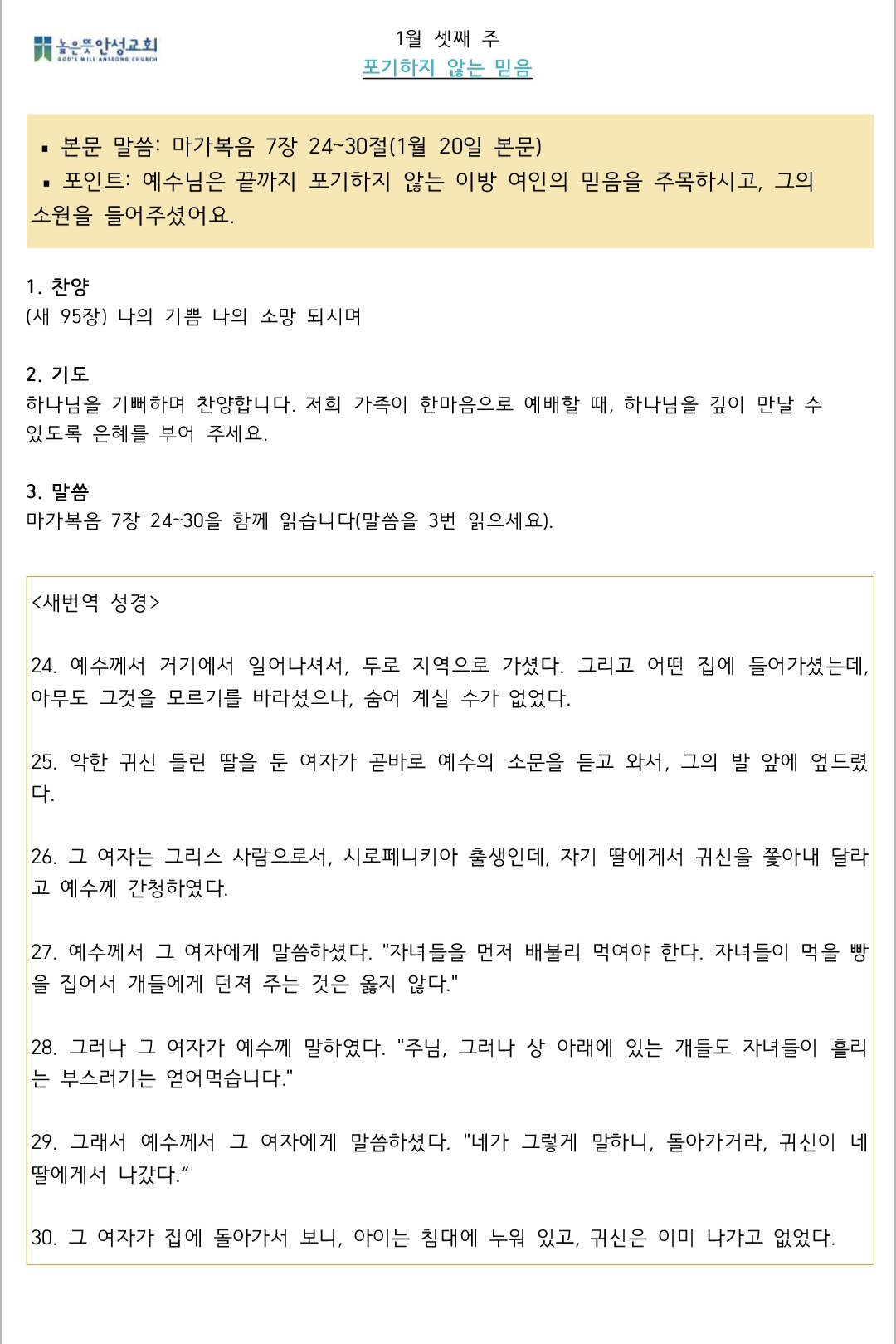 2024년 1월 셋째주 수요 가정예배 순서지 2024.01.20 15:28 소식/가정예배 순서지 2024년 1월 3주 가정예배.pdf 0.10MB 공유하기 게시글 관리 높은뜻 안성교회 '소식 > 가정예배 순서지' 카테고리의 다른 글 2024년 1월 넷째주 수요 가정예배 순서지 (0) 2024.02.17 설명절 가정예배 순서지 입니다 (0) 2024.02.09 2024년 1월 둘째주 수요 가정예배 순서지 (0) 2024.01.06 2024년 1월 첫째주 수요 가정예배 순서지 (0) 2023.12.30 2023년 12월 다섯째주 수요 가정예배 순서지 (0) 2023.12.23 댓글 공유하기 다른 글 댓글 이 글 공유하기 구독하기 구독하기 카카오톡 카카오톡 라인 라인 트위터 트위터 Facebook Facebook 카카오스토리 카카오스토리 밴드 밴드 네이버 블로그 네이버 블로그 Pocket Pocket Evernote Evernote 다른 글 2024년 1월 넷째주 수요 가정예배 순서지 2024년 1월 넷째주 수요 가정예배 순서지 2024.02.17 설명절 가정예배 순서지 입니다 설명절 가정예배 순서지 입니다 2024.02.09 2024년 1월 둘째주 수요 가정예배 순서지 2024년 1월 둘째주 수요 가정예배 순서지 2024.01.06 2024년 1월 첫째주 수요 가정예배 순서지 2024년 1월 첫째주 수요 가정예배 순서지 2023.12.30 다른 글 더 둘러보기