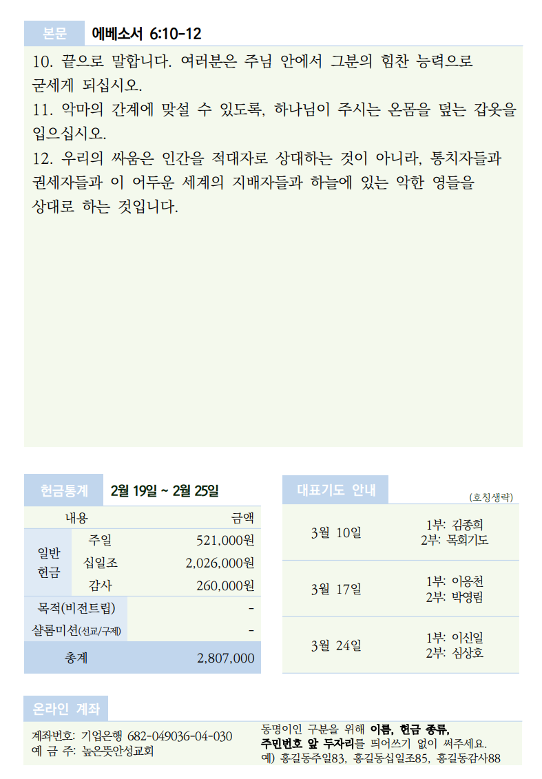 2024년 3월 3일 주보 2024.03.02 15:03 소식/교회주보 2024.03.03 주보.pdf 0.23MB 공유하기 게시글 관리 높은뜻 안성교회 '소식 > 교회주보' 카테고리의 다른 글 2024년 3월 17일 주보 (0) 2024.03.16 2024년 3월 10일 주보 (0) 2024.03.09 2024년 2월 25일 높은뜻안성교회 주보입니다. (0) 2024.02.24 2024년 2월 18일 주보입니다. (0) 2024.02.16 2024년 2월 11일 주보 (0) 2024.02.09 댓글 공유하기 다른 글 댓글 이 글 공유하기 구독하기 구독하기 카카오톡 카카오톡 라인 라인 트위터 트위터 Facebook Facebook 카카오스토리 카카오스토리 밴드 밴드 네이버 블로그 네이버 블로그 Pocket Pocket Evernote Evernote 다른 글 2024년 3월 17일 주보 2024년 3월 17일 주보 2024.03.16 2024년 3월 10일 주보 2024년 3월 10일 주보 2024.03.09 2024년 2월 25일 높은뜻안성교회 주보입니다. 2024년 2월 25일 높은뜻안성교회 주보입니다. 2024.02.24 2024년 2월 18일 주보입니다. 2024년 2월 18일 주보입니다. 2024.02.16 다른 글 더 둘러보기