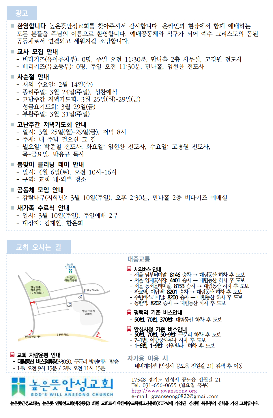 2024년 3월 10일 주보 2024.03.09 14:05 소식/교회주보 2024.03.10 주보.pdf 0.23MB 공유하기 게시글 관리 높은뜻 안성교회 '소식 > 교회주보' 카테고리의 다른 글 2024년 3월 24일 주보 (0) 2024.03.23 2024년 3월 17일 주보 (0) 2024.03.16 2024년 3월 3일 주보 (0) 2024.03.02 2024년 2월 25일 높은뜻안성교회 주보입니다. (0) 2024.02.24 2024년 2월 18일 주보입니다. (0) 2024.02.16 댓글 공유하기 다른 글 댓글 이 글 공유하기 구독하기 구독하기 카카오톡 카카오톡 라인 라인 트위터 트위터 Facebook Facebook 카카오스토리 카카오스토리 밴드 밴드 네이버 블로그 네이버 블로그 Pocket Pocket Evernote Evernote 다른 글 2024년 3월 24일 주보 2024년 3월 24일 주보 2024.03.23 2024년 3월 17일 주보 2024년 3월 17일 주보 2024.03.16 2024년 3월 3일 주보 2024년 3월 3일 주보 2024.03.02 2024년 2월 25일 높은뜻안성교회 주보입니다. 2024년 2월 25일 높은뜻안성교회 주보입니다. 2024.02.24 다른 글 더 둘러보기