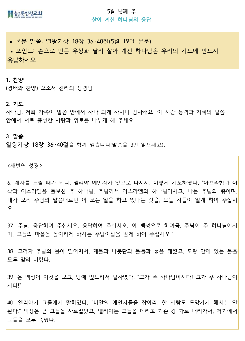2024년 5월 넷째주 수요 가정예배 순서지 2024.05.18 14:39 소식/가정예배 순서지 2024년 5월 4주 가정예배.pdf 0.10MB 공유하기 게시글 관리 높은뜻 안성교회 '소식 > 가정예배 순서지' 카테고리의 다른 글 2024년 6월 둘째주 수요 가정예배 순서지 (0) 2024.06.01 2024년 6월 첫째주 수요 가정예배 순서지 (0) 2024.05.25 2024년 5월 셋째주 수요 가정예배 순서지 (0) 2024.05.11 2024년 5월 둘째주 수요 가정예배 순서지 (0) 2024.05.04 2024년 5월 첫째주 수요 가정예배 순서지 (0) 2024.04.27 댓글 공유하기 다른 글 댓글 이 글 공유하기 구독하기 구독하기 카카오톡 카카오톡 라인 라인 트위터 트위터 Facebook Facebook 카카오스토리 카카오스토리 밴드 밴드 네이버 블로그 네이버 블로그 Pocket Pocket Evernote Evernote 다른 글 2024년 6월 둘째주 수요 가정예배 순서지 2024년 6월 둘째주 수요 가정예배 순서지 2024.06.01 2024년 6월 첫째주 수요 가정예배 순서지 2024년 6월 첫째주 수요 가정예배 순서지 2024.05.25 2024년 5월 셋째주 수요 가정예배 순서지 2024년 5월 셋째주 수요 가정예배 순서지 2024.05.11 2024년 5월 둘째주 수요 가정예배 순서지 2024년 5월 둘째주 수요 가정예배 순서지 2024.05.04 다른 글 더 둘러보기