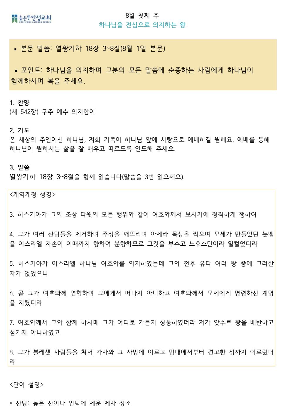 2024년 8월 첫째주 수요 가정예배 순서지 2024.07.27 10:50 소식/가정예배 순서지 2024년 8월 1주 가정예배.pdf 0.10MB 공유하기 게시글 관리 높은뜻 안성교회 '소식 > 가정예배 순서지' 카테고리의 다른 글 2024년 8월 셋째주 수요 가정예배 순서지 (0) 2024.08.10 2024년 8월 둘째주 수요 가정예배 순서지 (0) 2024.08.03 2024년 7월 넷째주 수요 가정예배 순서지 (0) 2024.07.20 2024년 7월 셋째주 수요 가정예배 순서지 (0) 2024.07.13 2024년 7월 둘째주 수요 가정예배 순서지 (0) 2024.07.06 댓글 공유하기 다른 글 댓글 이 글 공유하기 구독하기 구독하기 카카오톡 카카오톡 라인 라인 트위터 트위터 Facebook Facebook 카카오스토리 카카오스토리 밴드 밴드 네이버 블로그 네이버 블로그 Pocket Pocket Evernote Evernote 다른 글 2024년 8월 셋째주 수요 가정예배 순서지 2024년 8월 셋째주 수요 가정예배 순서지 2024.08.10 2024년 8월 둘째주 수요 가정예배 순서지 2024년 8월 둘째주 수요 가정예배 순서지 2024.08.03 2024년 7월 넷째주 수요 가정예배 순서지 2024년 7월 넷째주 수요 가정예배 순서지 2024.07.20 2024년 7월 셋째주 수요 가정예배 순서지 2024년 7월 셋째주 수요 가정예배 순서지 2024.07.13 다른 글 더 둘러보기