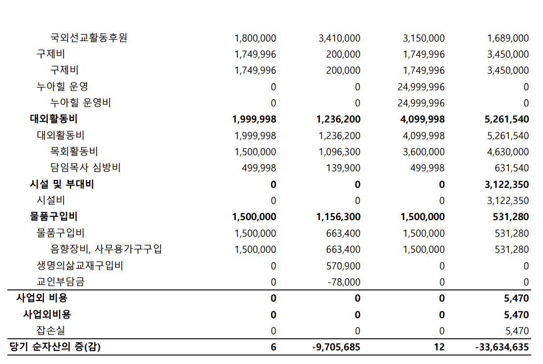 2024년 상반기 재정 결산서 안내 2024.08.10 17:34 소식/교회소식 높은뜻안성교회 2024년 상반기 재정 결산 안내입니다. 2024년 상반기 결산서.pdf 0.10MB 공유하기 게시글 관리 높은뜻 안성교회 '소식 > 교회소식' 카테고리의 다른 글 2025년 공동의회 결과 공지(2025년 예산 결의) (0) 2025.01.11 2024년 높은뜻안성교회 안수집사/권사 임직예식 (0) 2024.11.23 2023년 3분기 높은뜻안성교회 회계보고 (0) 2023.11.10 높은뜻안성교회 장로선거결과 공고 (0) 2023.10.22 높은뜻안성교회 1분기 재정보고서입니다. (0) 2023.06.01 댓글 공유하기 다른 글 댓글 이 글 공유하기 구독하기 구독하기 카카오톡 카카오톡 라인 라인 트위터 트위터 Facebook Facebook 카카오스토리 카카오스토리 밴드 밴드 네이버 블로그 네이버 블로그 Pocket Pocket Evernote Evernote 다른 글 2025년 공동의회 결과 공지(2025년 예산 결의) 2025년 공동의회 결과 공지(2025년 예산 결의) 2025.01.11 2024년 높은뜻안성교회 안수집사/권사 임직예식 2024년 높은뜻안성교회 안수집사/권사 임직예식 2024.11.23 2023년 3분기 높은뜻안성교회 회계보고 2023년 3분기 높은뜻안성교회 회계보고 2023.11.10 높은뜻안성교회 장로선거결과 공고 높은뜻안성교회 장로선거결과 공고 2023.10.22 다른 글 더 둘러보기