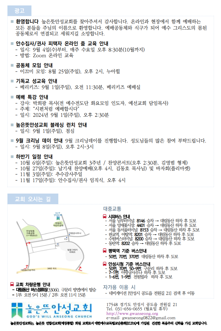 2024년 8월 25일 주보 2024.08.24 14:09 소식/교회주보 2024.08.25 주보.pdf 0.23MB 공유하기 게시글 관리 높은뜻 안성교회 '소식 > 교회주보' 카테고리의 다른 글 2024년 9월 8일 주보 (0) 2024.09.08 2024년 9월 1일 주보 (0) 2024.08.31 2024년 8월 18일 주보 (0) 2024.08.17 2024년 8월 11일 주보 (0) 2024.08.10 2024년 8월 4일 주보 (0) 2024.08.03 댓글 공유하기 다른 글 댓글 이 글 공유하기 구독하기 구독하기 카카오톡 카카오톡 라인 라인 트위터 트위터 Facebook Facebook 카카오스토리 카카오스토리 밴드 밴드 네이버 블로그 네이버 블로그 Pocket Pocket Evernote Evernote 다른 글 2024년 9월 8일 주보 2024년 9월 8일 주보 2024.09.08 2024년 9월 1일 주보 2024년 9월 1일 주보 2024.08.31 2024년 8월 18일 주보 2024년 8월 18일 주보 2024.08.17 2024년 8월 11일 주보 2024년 8월 11일 주보 2024.08.10 다른 글 더 둘러보기