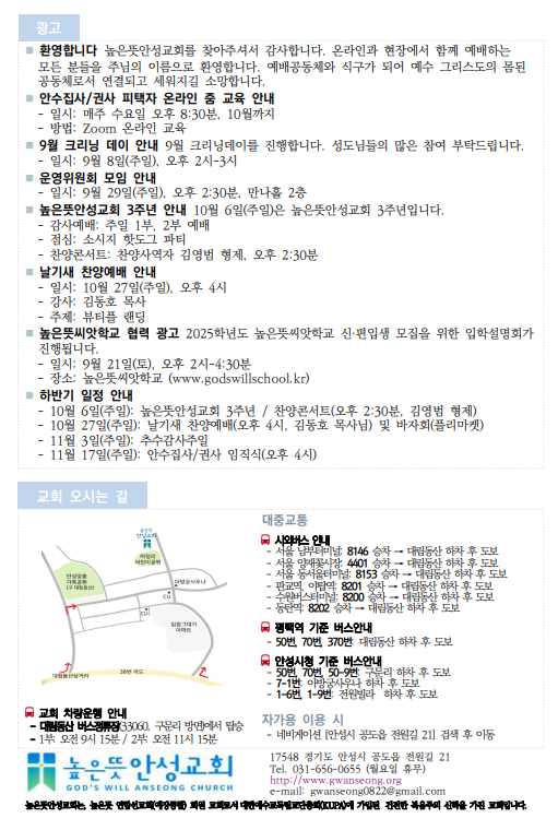 2024년 9월 8일 주보 2024.09.08 00:08 소식/교회주보 2024.09.08 주보.pdf 0.24MB 공유하기 게시글 관리 높은뜻 안성교회 '소식 > 교회주보' 카테고리의 다른 글 2024년 9월 22일 주보 (0) 2024.09.21 2024년 9월 15일 주보 (0) 2024.09.13 2024년 9월 1일 주보 (0) 2024.08.31 2024년 8월 25일 주보 (0) 2024.08.24 2024년 8월 18일 주보 (0) 2024.08.17 댓글 공유하기 다른 글 댓글 이 글 공유하기 구독하기 구독하기 카카오톡 카카오톡 라인 라인 트위터 트위터 Facebook Facebook 카카오스토리 카카오스토리 밴드 밴드 네이버 블로그 네이버 블로그 Pocket Pocket Evernote Evernote 다른 글 2024년 9월 22일 주보 2024년 9월 22일 주보 2024.09.21 2024년 9월 15일 주보 2024년 9월 15일 주보 2024.09.13 2024년 9월 1일 주보 2024년 9월 1일 주보 2024.08.31 2024년 8월 25일 주보 2024년 8월 25일 주보 2024.08.24 다른 글 더 둘러보기