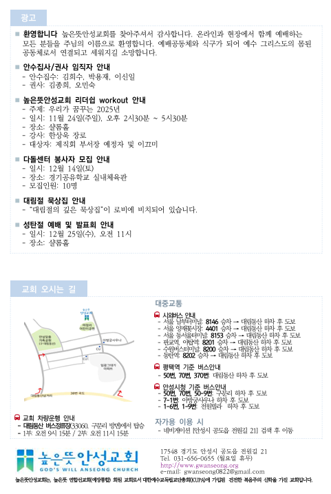 2024년 11월 24일 주보 2024.11.23 22:54 소식/교회주보 2024.11.24 주보.pdf 0.23MB 공유하기 게시글 관리 높은뜻 안성교회 '소식 > 교회주보' 카테고리의 다른 글 2024년 12월 8일 주보 (0) 2024.12.07 2024년 12월 1일 주보 (0) 2024.11.30 2024년 11월 17일 주보 (0) 2024.11.17 2024년 11월 10일 주보 (0) 2024.11.09 2024년 11월 3일 주보 (0) 2024.11.01 댓글 공유하기 다른 글 댓글 이 글 공유하기 구독하기 구독하기 카카오톡 카카오톡 라인 라인 트위터 트위터 Facebook Facebook 카카오스토리 카카오스토리 밴드 밴드 네이버 블로그 네이버 블로그 Pocket Pocket Evernote Evernote 다른 글 2024년 12월 8일 주보 2024년 12월 8일 주보 2024.12.07 2024년 12월 1일 주보 2024년 12월 1일 주보 2024.11.30 2024년 11월 17일 주보 2024년 11월 17일 주보 2024.11.17 2024년 11월 10일 주보 2024년 11월 10일 주보 2024.11.09 다른 글 더 둘러보기
