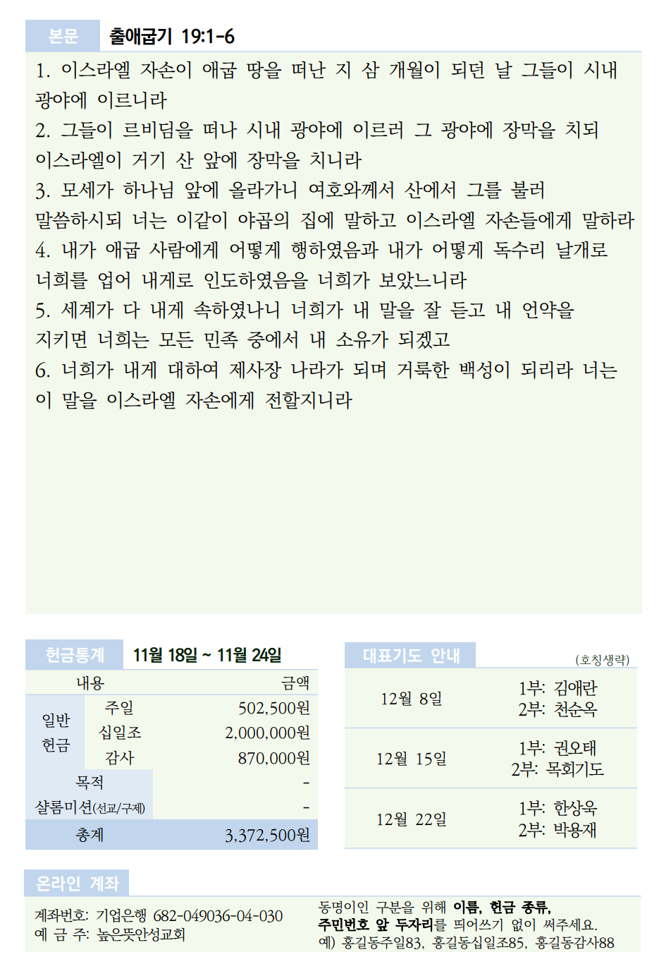 2024년 12월 1일 주보 2024.11.30 15:19 소식/교회주보 2024.12.01 주보.pdf 0.23MB 공유하기 게시글 관리 높은뜻 안성교회 '소식 > 교회주보' 카테고리의 다른 글 2024년 12월 15일 주보 (0) 2024.12.13 2024년 12월 8일 주보 (0) 2024.12.07 2024년 11월 24일 주보 (0) 2024.11.23 2024년 11월 17일 주보 (0) 2024.11.17 2024년 11월 10일 주보 (0) 2024.11.09 댓글 공유하기 다른 글 댓글 이 글 공유하기 구독하기 구독하기 카카오톡 카카오톡 라인 라인 트위터 트위터 Facebook Facebook 카카오스토리 카카오스토리 밴드 밴드 네이버 블로그 네이버 블로그 Pocket Pocket Evernote Evernote 다른 글 2024년 12월 15일 주보 2024년 12월 15일 주보 2024.12.13 2024년 12월 8일 주보 2024년 12월 8일 주보 2024.12.07 2024년 11월 24일 주보 2024년 11월 24일 주보 2024.11.23 2024년 11월 17일 주보 2024년 11월 17일 주보 2024.11.17 다른 글 더 둘러보기