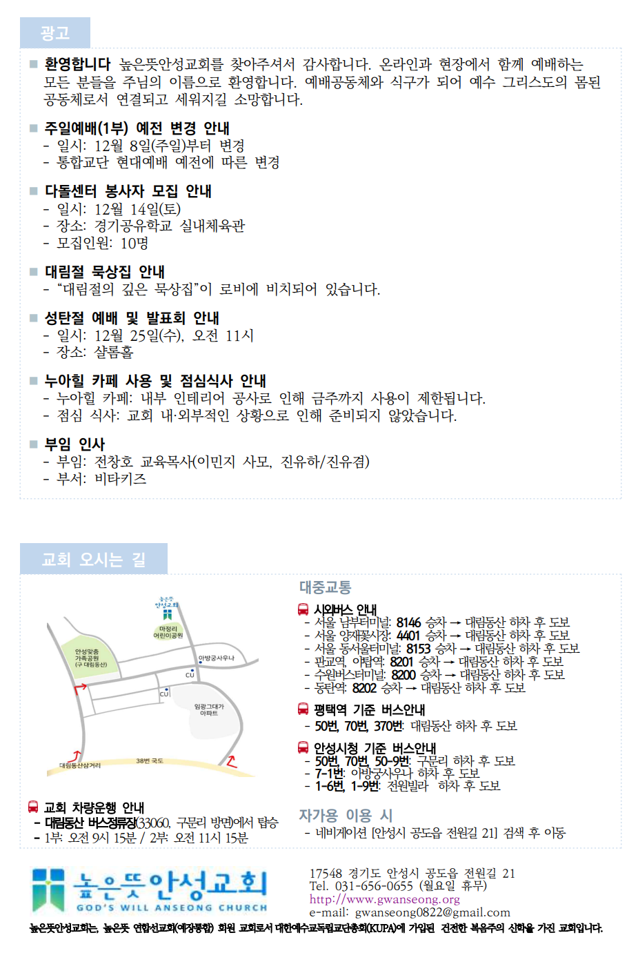 2024년 12월 1일 주보 2024.11.30 15:19 소식/교회주보 2024.12.01 주보.pdf 0.23MB 공유하기 게시글 관리 높은뜻 안성교회 '소식 > 교회주보' 카테고리의 다른 글 2024년 12월 15일 주보 (0) 2024.12.13 2024년 12월 8일 주보 (0) 2024.12.07 2024년 11월 24일 주보 (0) 2024.11.23 2024년 11월 17일 주보 (0) 2024.11.17 2024년 11월 10일 주보 (0) 2024.11.09 댓글 공유하기 다른 글 댓글 이 글 공유하기 구독하기 구독하기 카카오톡 카카오톡 라인 라인 트위터 트위터 Facebook Facebook 카카오스토리 카카오스토리 밴드 밴드 네이버 블로그 네이버 블로그 Pocket Pocket Evernote Evernote 다른 글 2024년 12월 15일 주보 2024년 12월 15일 주보 2024.12.13 2024년 12월 8일 주보 2024년 12월 8일 주보 2024.12.07 2024년 11월 24일 주보 2024년 11월 24일 주보 2024.11.23 2024년 11월 17일 주보 2024년 11월 17일 주보 2024.11.17 다른 글 더 둘러보기