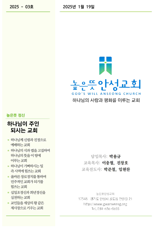 2025년 1월 19일 주보 2025.01.18 22:35 소식/교회주보 2025.01.19 주보.pdf 0.22MB 공유하기 게시글 관리 높은뜻 안성교회 '소식 > 교회주보' 카테고리의 다른 글 2025년 2월 2일 주보 (0) 2025.02.01 2025년 1월 26일 주보 (0) 2025.01.25 2025년 1월 12일 주보 (0) 2025.01.11 2025년 1월 5일 주보 (0) 2025.01.05 2024년 12월 29일 주보 (0) 2024.12.28 댓글 공유하기 다른 글 댓글 이 글 공유하기 구독하기 구독하기 카카오톡 카카오톡 라인 라인 트위터 트위터 Facebook Facebook 카카오스토리 카카오스토리 밴드 밴드 네이버 블로그 네이버 블로그 Pocket Pocket Evernote Evernote 다른 글 2025년 2월 2일 주보 2025년 2월 2일 주보 2025.02.01 2025년 1월 26일 주보 2025년 1월 26일 주보 2025.01.25 2025년 1월 12일 주보 2025년 1월 12일 주보 2025.01.11 2025년 1월 5일 주보 2025년 1월 5일 주보 2025.01.05 다른 글 더 둘러보기