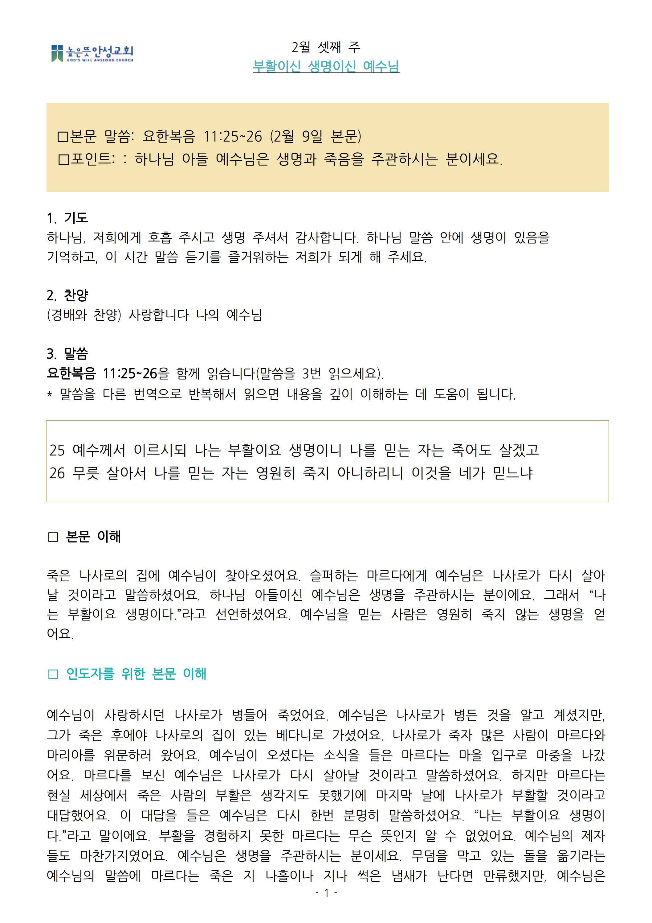 2025년 2월 셋째주 수요 가정예배 순서지 2025.02.09 08:55 소식/가정예배 순서지 2025년 2월 3주 가정예배.pdf 0.10MB 공유하기 게시글 관리 높은뜻 안성교회 '소식 > 가정예배 순서지' 카테고리의 다른 글 2025년 2월 넷째주 수요 가정예배 순서지 (0) 2025.02.22 2025년 2월 셋째주 수요 가정예배 순서지 (0) 2025.02.16 2025년 2월 둘째주 수요 가정예배 순서지 (0) 2025.02.02 2025년 2월 첫째주 수요 가정예배 순서지 (0) 2025.01.25 2025년 1월 넷째주 수요 가정예배 순서지 (0) 2025.01.18 댓글 공유하기 다른 글 댓글 이 글 공유하기 구독하기 구독하기 카카오톡 카카오톡 라인 라인 트위터 트위터 Facebook Facebook 카카오스토리 카카오스토리 밴드 밴드 네이버 블로그 네이버 블로그 Pocket Pocket Evernote Evernote 다른 글 2025년 2월 넷째주 수요 가정예배 순서지 2025년 2월 넷째주 수요 가정예배 순서지 2025.02.22 2025년 2월 셋째주 수요 가정예배 순서지 2025년 2월 셋째주 수요 가정예배 순서지 2025.02.16 2025년 2월 둘째주 수요 가정예배 순서지 2025년 2월 둘째주 수요 가정예배 순서지 2025.02.02 2025년 2월 첫째주 수요 가정예배 순서지 2025년 2월 첫째주 수요 가정예배 순서지 2025.01.25 다른 글 더 둘러보기