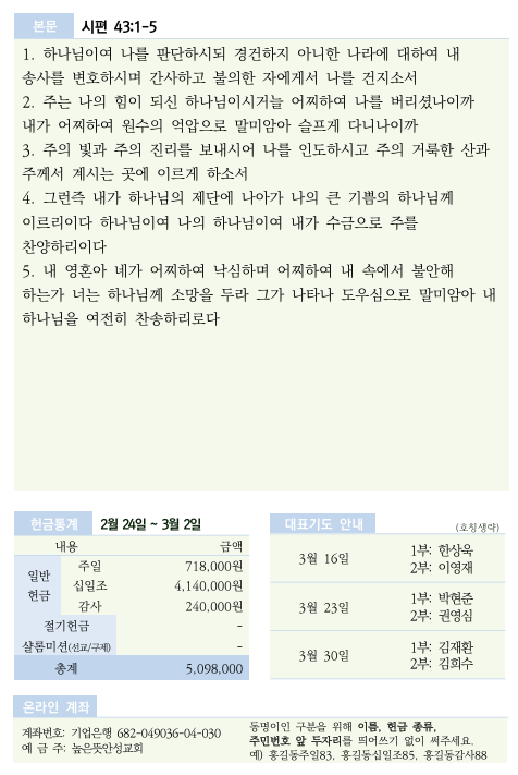 2025년 3월 9일 주보 2025.03.08 20:10 소식/교회주보 2025.03.09 주보.pdf 0.23MB 공유하기 게시글 관리 높은뜻 안성교회 '소식 > 교회주보' 카테고리의 다른 글 2025년 3월 23일 주보 (0) 2025.03.22 2025년 3월 16일 주보 (0) 2025.03.15 2025년 2월 23일 주보 (0) 2025.02.22 2025년 2월 16일 주보 (0) 2025.02.16 2025년 2월 9일 주보 (0) 2025.02.09 댓글 공유하기 다른 글 댓글 이 글 공유하기 구독하기 구독하기 카카오톡 카카오톡 라인 라인 트위터 트위터 Facebook Facebook 카카오스토리 카카오스토리 밴드 밴드 네이버 블로그 네이버 블로그 Pocket Pocket Evernote Evernote 다른 글 2025년 3월 23일 주보 2025년 3월 23일 주보 2025.03.22 2025년 3월 16일 주보 2025년 3월 16일 주보 2025.03.15 2025년 2월 23일 주보 2025년 2월 23일 주보 2025.02.22 2025년 2월 16일 주보 2025년 2월 16일 주보 2025.02.16 다른 글 더 둘러보기
