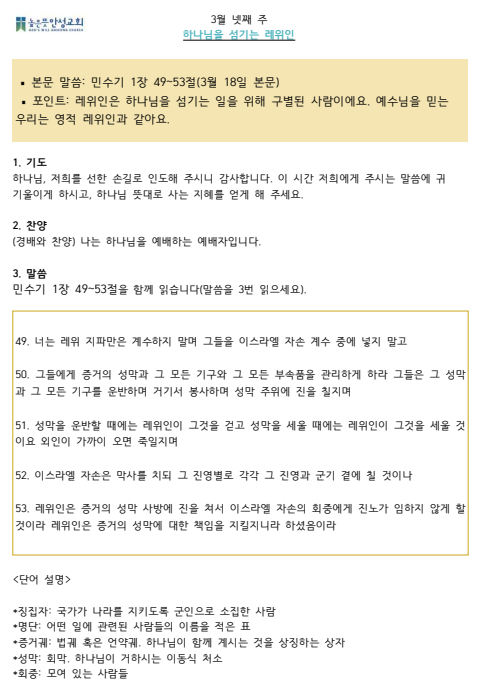 2025년 3월 넷째주 수요 가정예배 순서지 2025.03.22 13:19 소식/가정예배 순서지 2025년 3월 4주 가정예배.pdf 0.09MB 공유하기 게시글 관리 높은뜻 안성교회 '소식 > 가정예배 순서지' 카테고리의 다른 글 2025년 4월 첫째주 수요 가정예배 순서지 (0) 2025.04.05 2025년 3월 다섯째주 수요 가정예배 순서지 (0) 2025.03.28 2025년 3월 셋째주 수요 가정예배 순서지 (0) 2025.03.15 2025년 3월 둘째주 수요 가정예배 순서지 (0) 2025.03.08 2025년 2월 넷째주 수요 가정예배 순서지 (0) 2025.02.22 댓글 공유하기 다른 글 댓글 이 글 공유하기 구독하기 구독하기 카카오톡 카카오톡 라인 라인 트위터 트위터 Facebook Facebook 카카오스토리 카카오스토리 밴드 밴드 네이버 블로그 네이버 블로그 Pocket Pocket Evernote Evernote 다른 글 2025년 4월 첫째주 수요 가정예배 순서지 2025년 4월 첫째주 수요 가정예배 순서지 2025.04.05 2025년 3월 다섯째주 수요 가정예배 순서지 2025년 3월 다섯째주 수요 가정예배 순서지 2025.03.28 2025년 3월 셋째주 수요 가정예배 순서지 2025년 3월 셋째주 수요 가정예배 순서지 2025.03.15 2025년 3월 둘째주 수요 가정예배 순서지 2025년 3월 둘째주 수요 가정예배 순서지 2025.03.08 다른 글 더 둘러보기